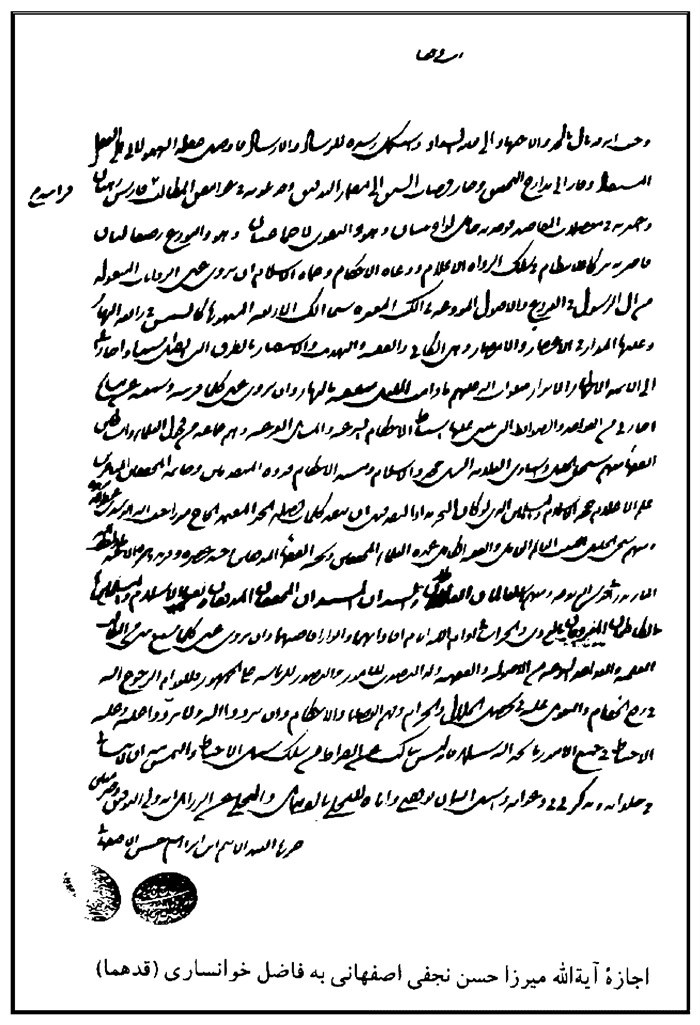 65. شيخ عباس بن احمد خوانسارى اصفهانى